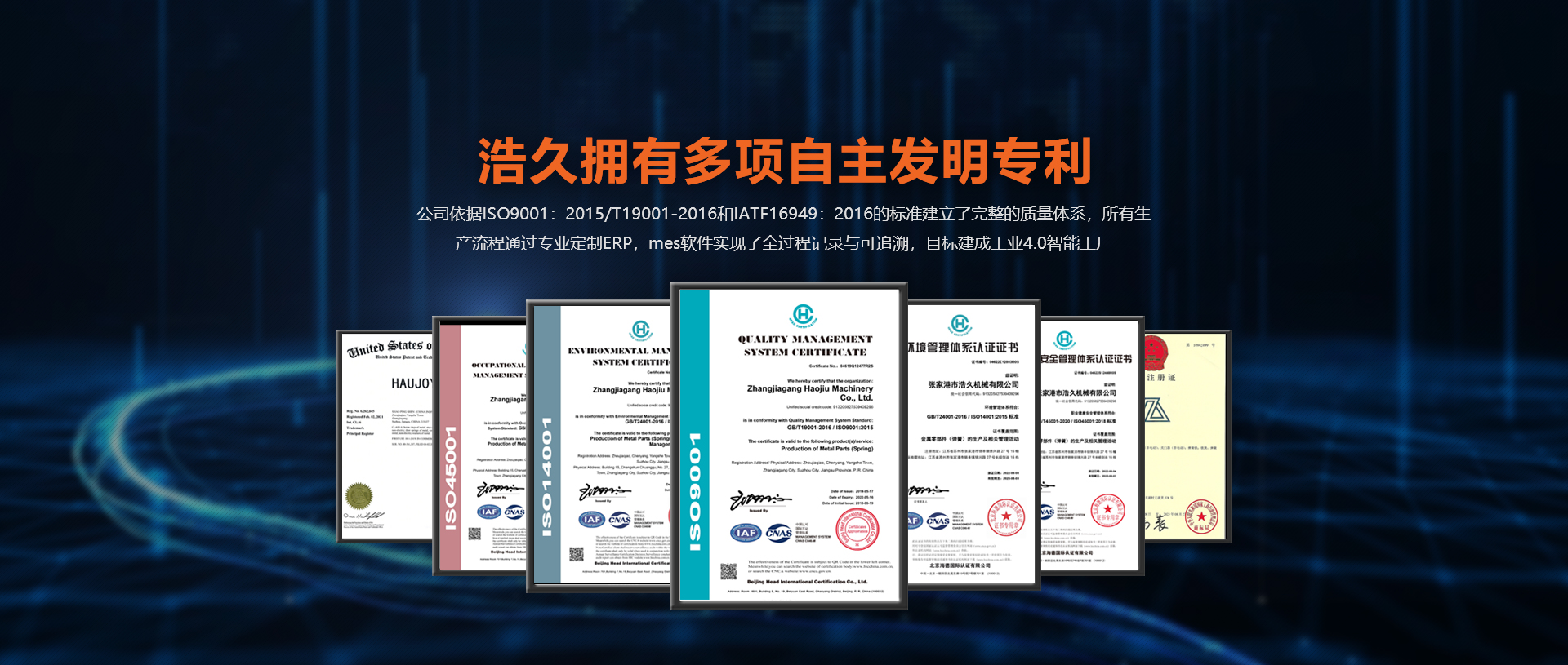 擁有GB/T24001-2016 / ISO14001:2015 標(biāo)準(zhǔn)的環(huán)境認(rèn)證證書,GB/T45001-2020 / ISO45001:2018 標(biāo)準(zhǔn)的職業(yè)健康安全管理體系認(rèn)證證書等多項實力認(rèn)證證書